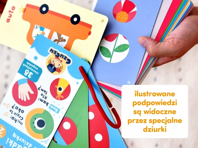Książeczka CzuCzu zagadki z wizjerem przynosi dzieciom radość z odkrywania świata poprzez wesołe rymy i obrazki. Dzięki specjalnym otworom mali czytelnicy mogą podejrzeć fragment ilustracji i odgadnąć prawidłową odpowiedź. Każda strona subtelnie zachęca do nazywania, opowiadania i poznawania nowych słów.