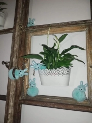 Zawieszana dekoracja królik z pomponem wprowadza delikatny i figlarny akcent do Twojego domu. Miękki pompon tworzy przyjemny efekt dotykowy i wizualny, a motyw królika jest ponadczasowo uroczy.