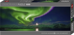 Panoramiczne puzzle HEYE z motywem zorzy polarnej oferują 1000 elementów świetnej zabawy, a po ułożeniu tworzą obraz o wymiarach 95 × 33 cm.