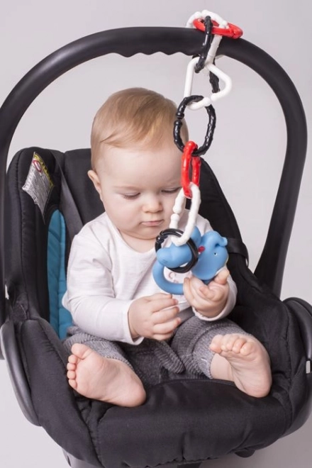Czarno-białe ogniwa łączące to świetna pomoc dla rodziców i maluszków. Kontrastowe kolory przyciągają uwagę noworodków i wspierają rozwój wzroku, a połączone ogniwa pomagają trenować chwyt i koordynację rąk. Dzięki uniwersalnemu kształtowi łatwo przymocujesz je do zabawek, smoczka, wózka czy fotelika samochodowego.