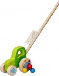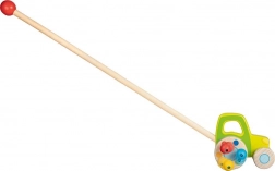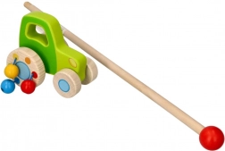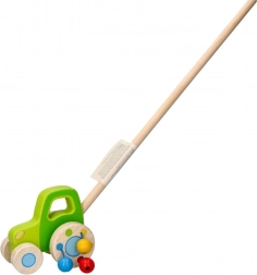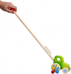 Drewniany traktor na patyku został zaprojektowany tak, aby zachęcać dzieci do ruchu i odkrywania. Wykonany z litego drewna oferuje trwałość i długowieczność. Na tylnych kołach znajdują się koraliki, które podczas jazdy wydają dźwięki, dodatkowo stymulując zmysły małych odkrywców.