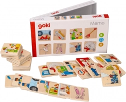 Odkryj zabawne i edukacyjne drewniane memory z zawodami od GOKI. Solidne drewniane kartoniki z kolorowymi ilustracjami par (np. strażak + wąż, baletnica + pointy, kucharz + patelnia) świetnie trenują pamięć, kojarzenie i słownictwo. Dzięki wytrzymałemu wykonaniu nie zaginają się rogi, a gra służy na długo. Zestaw zawiera 32 elementy oraz instrukcję, idealny od 3 lat.