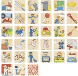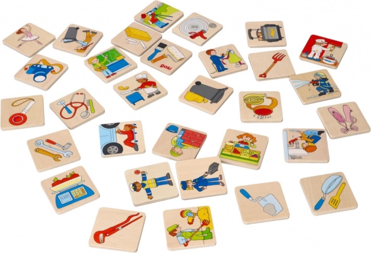 Drewniane memory Zawody od GOKI dostarcza dzieciom i dorosłym mądrej rozrywki, która rozwija koncentrację, logiczne myślenie i komunikację. Każda para przedstawia zawód oraz odpowiadający mu przedmiot – dzieci naturalnie uczą się rozpoznawać różne zawody i ich narzędzia.