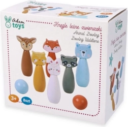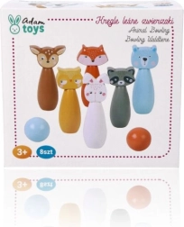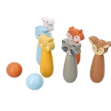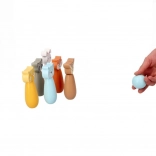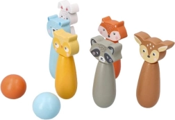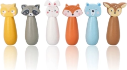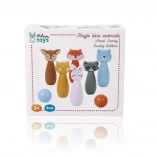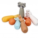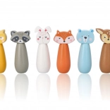 Kolorowe kręgle z motywami lisa, niedźwiedzia, królika, szopa, jelenia i innych zwierzątek zachęcają do zabawy i pobudzają dziecięcą wyobraźnię.