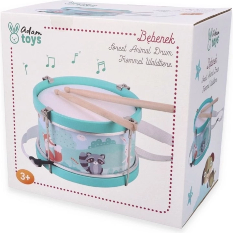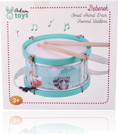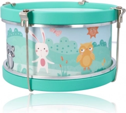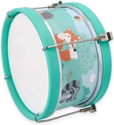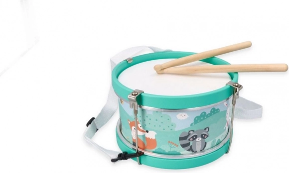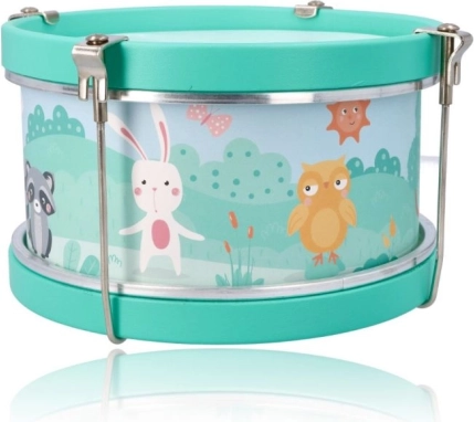 Dziecięcy bębenek Leśne zwierzątka ucieszy każde dziecko, które lubi odkrywać świat muzyki. Kolorowe ilustracje liska, jeża i innych zwierzątek inspirują do grania, a lekka konstrukcja i wygodny pasek ułatwiają noszenie. Gra na bębenku wspiera naturalne poczucie rytmu, koncentrację i koordynację.