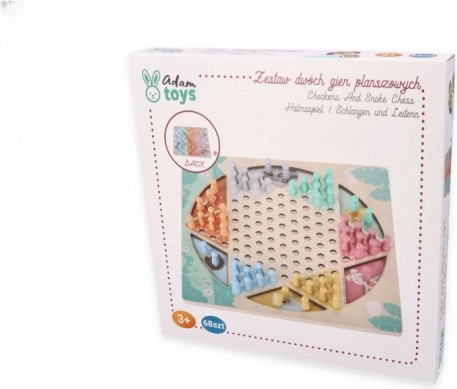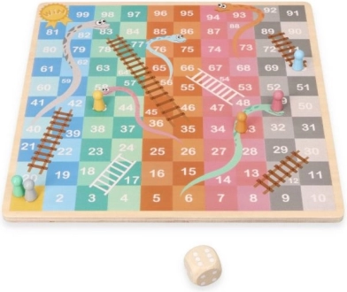 Ta drewniana gra planszowa łączy dwie klasyki w jednym. Na jednej stronie znajdziesz strategiczną HALAMĘ (chińskie warcaby), w której celem jest przeniesienie wszystkich swoich pionków na przeciwległą stronę. Na drugiej czeka żwawa gra Węże i Drabiny, w której z pomocą kostki posuwasz się do mety, wspinasz po drabinach i zjeżdżasz po wężach.