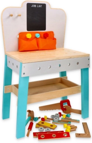 Ten stół warsztatowy pobudza dziecięcą kreatywność i oferuje edukacyjną zabawę, która angażuje dzieci w wyobrażeniowe odgrywanie ról i pomaga rozwijać ich umiejętności motoryczne.