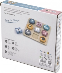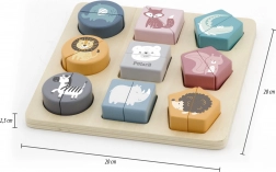 Drewniana układanka ze zwierzętami Viga to idealna pomoc do wczesnej nauki przez zabawę. Dzieci umieszczają poszczególne kształty ze zwierzętami w odpowiadających im otworach, dzięki czemu naturalnie trenują koordynację ręka–oko, cierpliwość i koncentrację. Wysokiej jakości drewniane wykonanie i gładkie krawędzie zapewniają wygodną i bezpieczną zabawę.