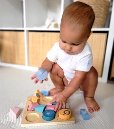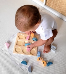 Wkładanie kształtów w odpowiednie otwory trenuje koordynację ręka–oko, cierpliwość i koncentrację już od najmłodszych lat.