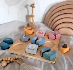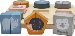 - Rozpoznawanie kształtów, kolorów i zwierząt podczas dopasowywania do właściwych otworów