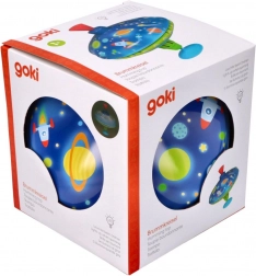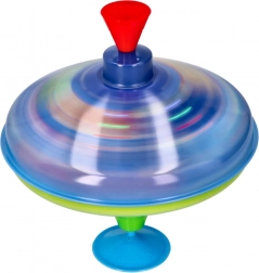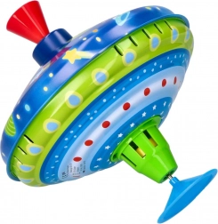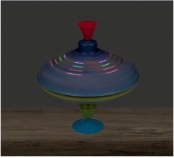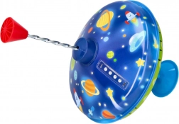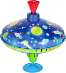 Ten kolorowy metalowy bąk z kosmicznymi motywami przyciąga wzrok od pierwszego spojrzenia. Dzięki zintegrowanej podstawce stoi stabilnie, dlatego nadaje się także dla najmłodszych dzieci. Wystarczy naciskać górny uchwyt, aby bąk się rozkręcił, włączyły się lampki LED i pojawił się charakterystyczny, lecz przyjemny dźwięk, który podkreśla radość z zabawy.