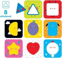 Pierwsze puzzle–sorter kształtów dla najmłodszych od 18 miesięcy rozwijają małą motorykę, logiczne myślenie i percepcję kolorów. Duże plansze z wyjmowanymi elementami oferują tylko jedno prawidłowe dopasowanie, dzięki czemu dziecko uczy się metodą prób i błędów bez frustracji. Duże, bezpieczne elementy, barwne ilustracje i edukacyjna zabawa na każdy dzień.
