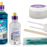 Klej PVA 500 ml, aktywator 250 ml, brokat 5 g, szpatułka, miarka, pojemnik