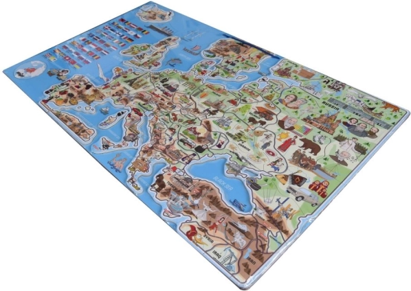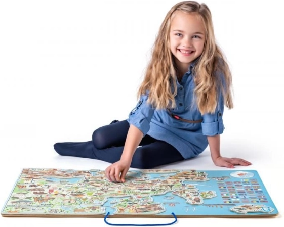 Dzięki magnetycznej mapie Europy dzieci w zabawny sposób opanują geografię i poszerzą swoją wiedzę o krajach europejskich oraz ich zwyczajach.