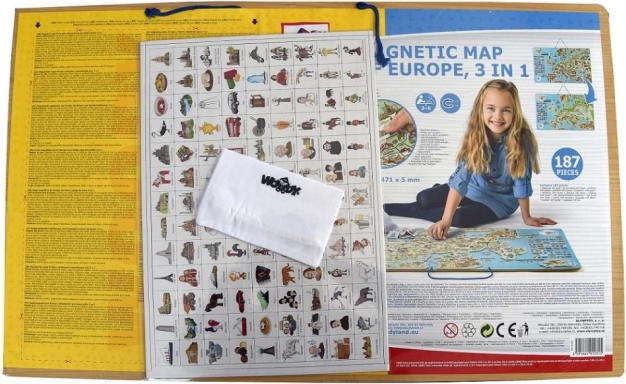 Woody Magnetyczna mapa Europy z obrazkami i grą towarzyską, 3w1