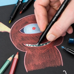 Połączenie precyzyjnych linii pisaka i gładkiego cieniowania kredką daje swobodę tworzenia – od detali po duże powierzchnie.