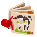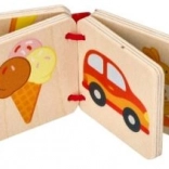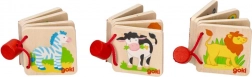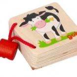 Dzięki drewnianej miniksiążeczce maluchy poznają różne zwierzątka i poszerzają swoje słownictwo.