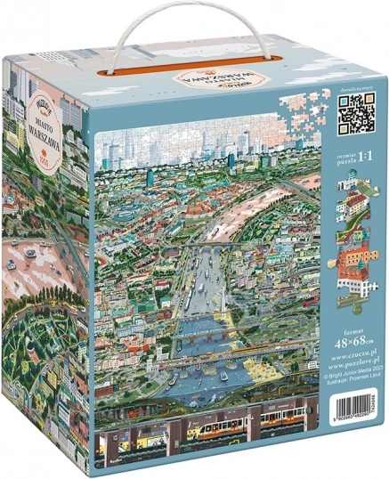 Przygotuj się na wciągające wyzwanie i zwiedzaj Warszawę „palcem i oczami” na pięknie ilustrowanym obrazie. Puzzle 1000-elementowe ucieszą miłośników miejskich motywów, rodziny oraz doświadczonych układaczy. Możesz układać je samodzielnie, z rodziną lub przyjaciółmi – tak, jak lubisz.