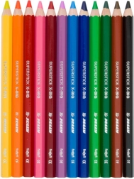 Duże kredki woskowe X-Big Jolly wspierają kreatywność i rozwój motoryki małej. Dzięki solidnemu wykonaniu dobrze leżą w dłoni nawet najmłodszych dzieci i wytrzymują silniejszy nacisk podczas rysowania. Zestaw oferuje 12 intensywnych odcieni, które gładko suną po papierze i pozostawiają równomierny ślad.