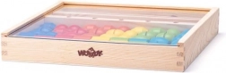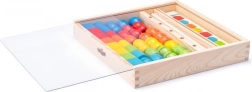 Kreatywny i edukacyjny zestaw, który łączy naukę z zabawą. Dzieci układają kolorowe koraliki według wzorów na prętach, rozwijając tym samym wzrokową pamięć, logiczne myślenie, umiejętności matematyczne oraz małą motorykę. Całość jest przechowywana w solidnym drewnianym pudełku, które służy także jako podstawa do zabawy.