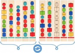 Dwustronne karty ze wzorami prowadzą dziecko krok po kroku. Ćwiczona jest uwaga, pamięć i logiczne porządkowanie elementów.