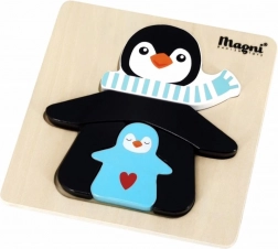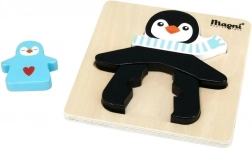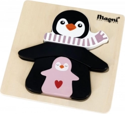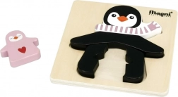 Urocze drewniane puzzle z motywem pingwina i jego piskląt ucieszą najmłodsze dzieci już od 18 miesięcy. Wspierają małą motorykę, logiczne myślenie oraz koordynację. Wysokiej jakości drewniane wykonanie i przyjemny format 14,5 × 14,5 cm są idealne dla małych rączek.