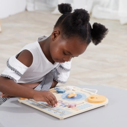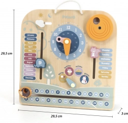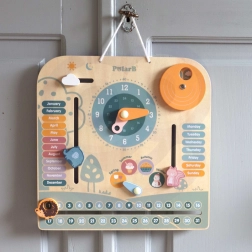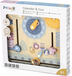 Drewniany kalendarz i zegar PolarB Montessori to doskonałe połączenie zabawy i nauki. Pomaga dzieciom uczyć się rozpoznawać czas i dni tygodnia, poznawać pory roku oraz pogodę dzięki interaktywnym elementom.