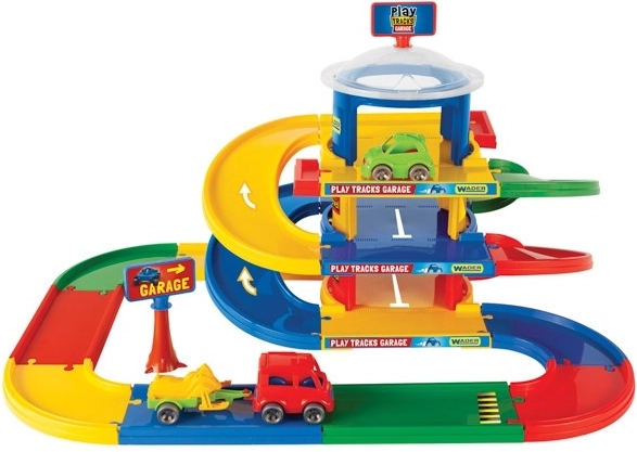 Trzypoziomowy parking z serii Play Tracks Garage to fantastyczna zabawka dla najmłodszych miłośników motoryzacji.