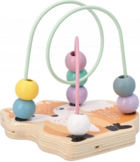 Kolorowe koraliki i druciane pętle pozwalają dzieciom rozwijać precyzję motoryki przez przesuwanie koralików po drucikach.