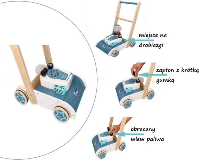 Drewniana kosiarka z dźwiękiem to idealny wybór dla wszystkich małych ogrodników. Ta zabawka została zaprojektowana tak, aby pomóc dzieciom poprawić ich koordynację i równowagę. Mimo że wspiera chodzenie, nie jest przeznaczona jako tradycyjny chodzik do nauki pierwszych kroków.