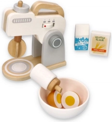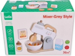 Ten drewniany mikser to świetna zabawka dla młodych kucharzy, którzy lubią naśladować czynności dorosłych. Połączenie szarości i naturalnego koloru drewna doskonale wpasuje się w każdą dziecięcą kuchnię.