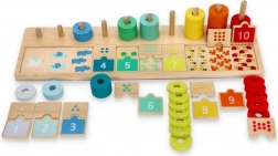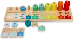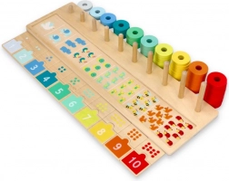 Nawlekając kolorowe krążki na kołki, dzieci łatwo zrozumieją pojęcie ilości i kolejność liczb. Świetna podstawa do pierwszych umiejętności matematycznych.