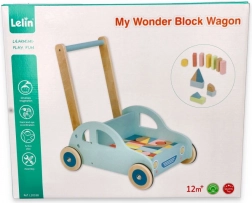 Stylowy drewniany chodzik z klockami LELIN w formie autka wspiera pierwsze kroki, rozwija motorykę i oferuje mnóstwo twórczej zabawy. Wykonany z lakierowanego drewna, o stabilnej konstrukcji i z gumowymi kółkami dla cichej i pewnej jazdy. W zestawie kolorowe klocki, wymiary 46 × 32 × 40 cm, od 12 miesięcy, CE.