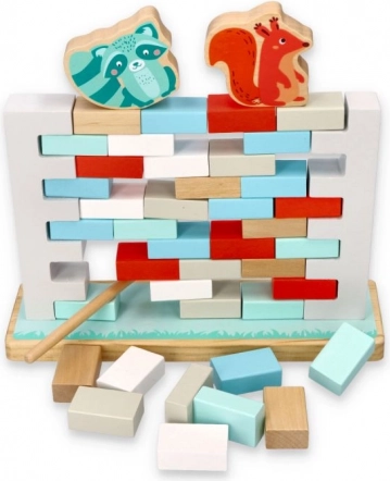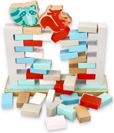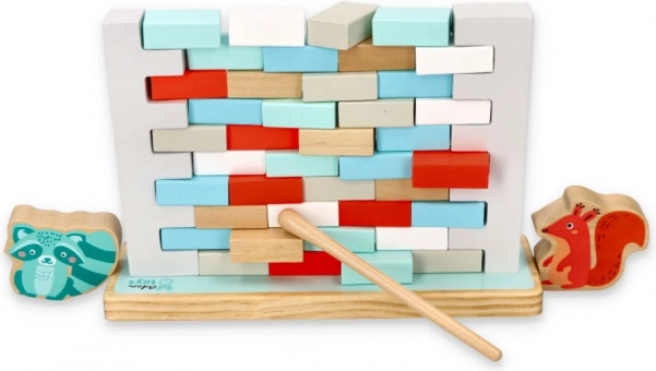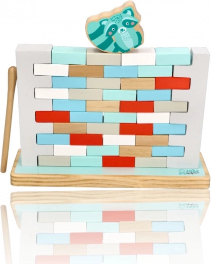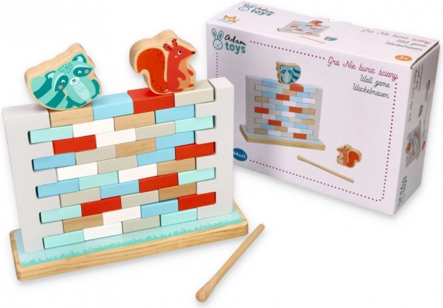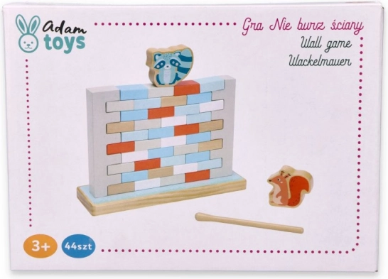 NIE ZBURZ ŚCIANY to wciągająca gra zręcznościowa, która rozwija cierpliwość, precyzję i współpracę zespołową. Celem jest stopniowe wysuwanie cegiełek ze ściany za pomocą drewnianej pałeczki tak, aby konstrukcja się nie zawaliła, a zwierzątka na szczycie pozostały na miejscu. Gra jest idealna dla przedszkolaków i na wspólne rodzinne chwile.
