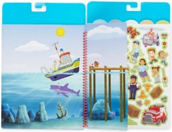 Zabawa naklejkami wspiera opowiadanie historii, koncentrację oraz koordynację oko–ręka. Nauka przez zabawę.