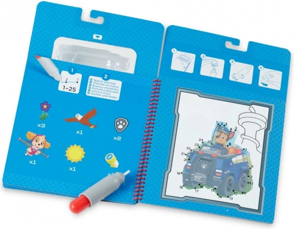 Wodne kolorowanki Water WOW! z motywem PAW Patrol – Chase to idealny wybór dla małych artystów od 3 lat. Napełniany wodą pisak odkrywa ukryte kolory i detale na stronach, które po wyschnięciu ponownie znikają. Dzięki spiralnej oprawie książkę łatwo obsługiwać w domu i w podróży.