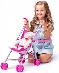 Wózek jest wyposażony w solidną metalową ramę i wygodne siedzenie z tkaniny. Małe dziewczynki mogą trenować swoje umiejętności opiekuńcze, bawiąc się. Klasyczny styl, więc łatwo go używać zarówno wewnątrz, jak i na zewnątrz.