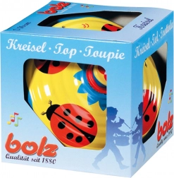 Klasyczny dziecięcy bączek z biedronkami to ponadczasowa zabawka, która zajmie na długie minuty. Wystarczy kilka razy nacisnąć górny tłok, a bączek rozkręci się w kolorowy wir, któremu towarzyszy dobrze znany dźwięk.
