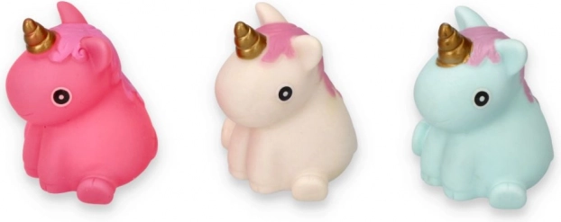 Odkryj magiczny świat kąpieli z zestawem jednorożców w delikatnych kolorach. Każdy jednorożec ma złoty róg i wesołą grzywę, które pobudzają dziecięcą wyobraźnię. Dzięki przyjemnemu miękkiemu materiałowi łatwo się je ściska i są idealne dla małych dłoni.