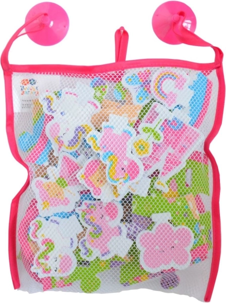 Kolorowe piankowe elementy pływają na wodzie i po zwilżeniu trzymają się ścian wanny. Dzieci mogą układać własny świat jednorożców i uczyć się kształtów oraz kolorów.