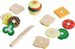 Ten wysokiej jakości drewniany zestaw zaprojektowano tak, aby bawił dzieci i jednocześnie wspierał ich rozwój. Dzięki realistycznemu wzornictwu Twoje dziecko stworzy ulubione kanapki z różnych komponentów, takich jak pieczywo, sałata, pomidor, ser i ogórek.