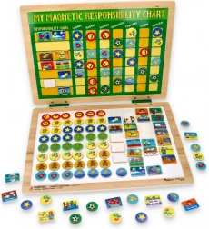Tablica pomaga dzieciom rozwijać umiejętności organizacyjne i zwiększa ich świadomość odpowiedzialności.