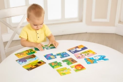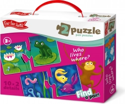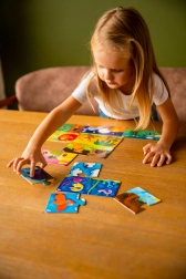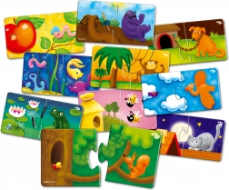 Far Far Land Puzzle to idealna zabawka edukacyjna dla dzieci od trzech lat. Ten zestaw zawiera 10 obrazków układanki, z których każdy składa się z dwóch części – na jednej jest zwierzątko, a na drugiej jego siedlisko. Dzięki tej grze dzieci uczą się rozpoznawać różne typy zwierząt i ich środowisko, co rozwija ich umiejętność klasyfikacji i kombinacji.