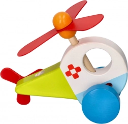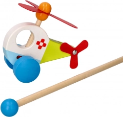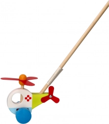 Drewniany helikopter z kijem od Goki przynosi mnóstwo zabawy dla dzieci, które właśnie uczą się chodzić. Został wykonany z litego drewna, co gwarantuje długą żywotność i bezpieczeństwo podczas zabawy. Dzięki kolorowemu wzornictwu i ruchomym elementom, takim jak wirnik i kółka, zachwyci każdego małego odkrywcę.