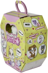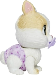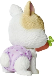 Uroczy króliczek z serii Pamper Petz szuka nowego opiekuna, który nada mu imię i obdarzy go miłością. Potrafi pić prawdziwą wodę z buteleczki i sikać do pieluszki, która po zamoczeniu zmienia kolor. Dzięki magicznej łapce dowiesz się, czy to dziewczynka, czy chłopiec. W zestawie znajduje się papierowe przenośne „domeczkowe” opakowanie z rączką oraz niespodziankowe akcesoria. Odpowiednie od 3 lat.