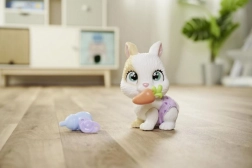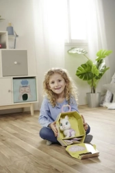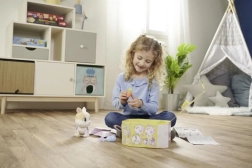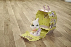 Króliczka łatwo zabierzesz wszędzie ze sobą dzięki papierowemu opakowaniu z rączką, które służy jako przenośny domek. W środku czekają też papierowe woreczki z niespodzianką – tematyczne akcesoria do jeszcze większej liczby scenariuszy zabawy. Magiczna łapka zdradzi płeć pupila i pomoże dzieciom zbudować z nim osobistą więź.