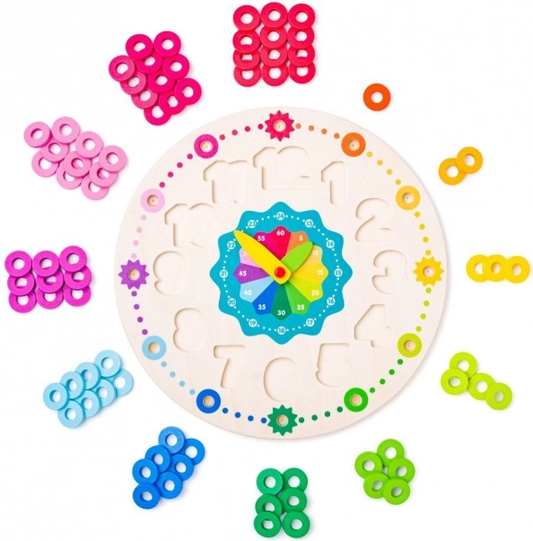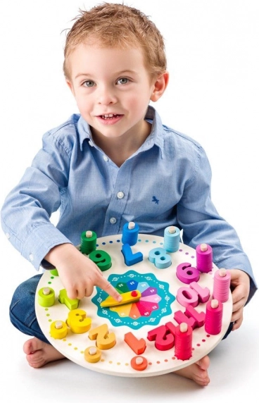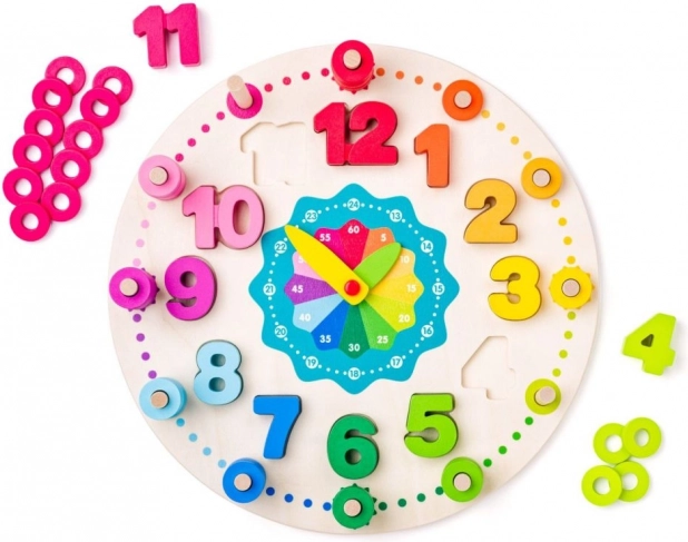 Drewniany zegar edukacyjny POLARB z sorterem kształtów i nawlekaniem