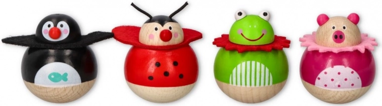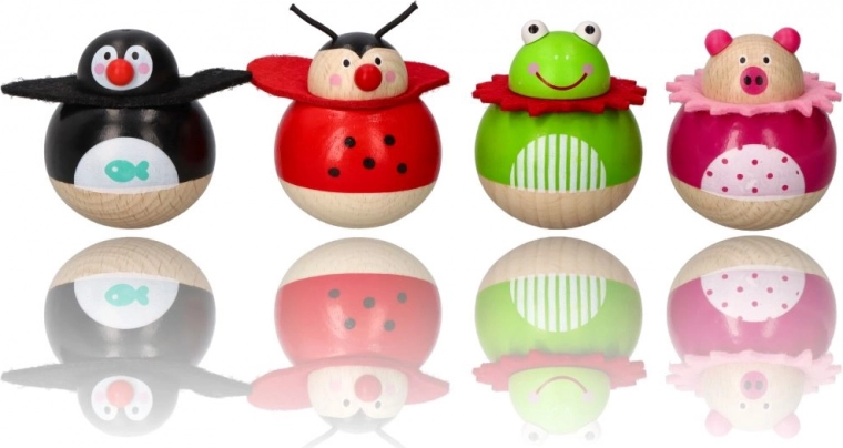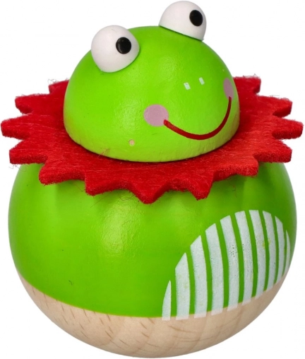 Zaokrąglony spód sprawia, że żabka po każdym popchnięciu sama wraca do pozycji pionowej. Idealna do pierwszego poznawania równowagi i zależności przyczyna–skutek.