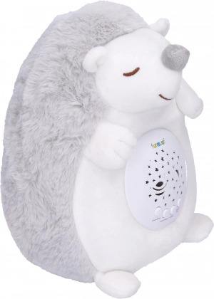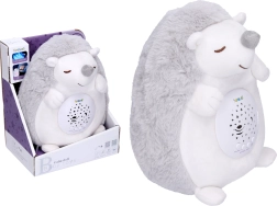 Uroczy pluszowy jeżyk ukoi Twoje dziecko delikatną melodią lub szumem, a dzięki projektorowi na brzuszku wyczaruje na ścianach i suficie nocne niebo pełne gwiazd i kolorów. Idealny od urodzenia do spokojnego zasypiania i budowania przyjemnej atmosfery.