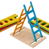 Unikalna drewniana konstrukcja oferuje urozmaiconą i wizualnie ciekawą zabawę. Kolorowe drabinki w żywych odcieniach żółtego, niebieskiego, czerwonego, zielonego i pomarańczowego inspirują do twórczej zabawy.